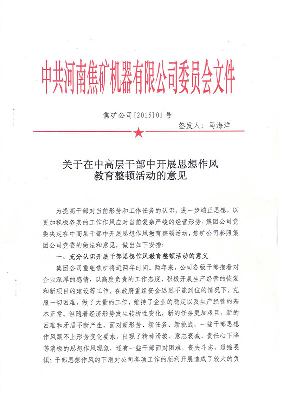 關(guān)于在中高層干部中開展思想作風(fēng)教育整頓活動(dòng)的意見